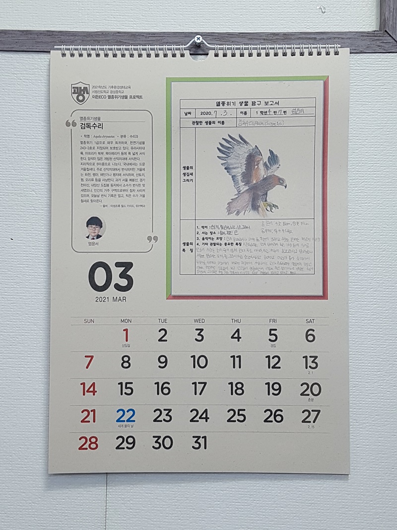 광성중학교 2021년 벽걸이달력