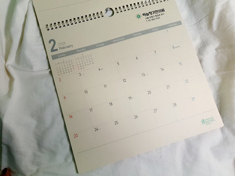 하늘향기한의원 2020년 병원벽걸이달력