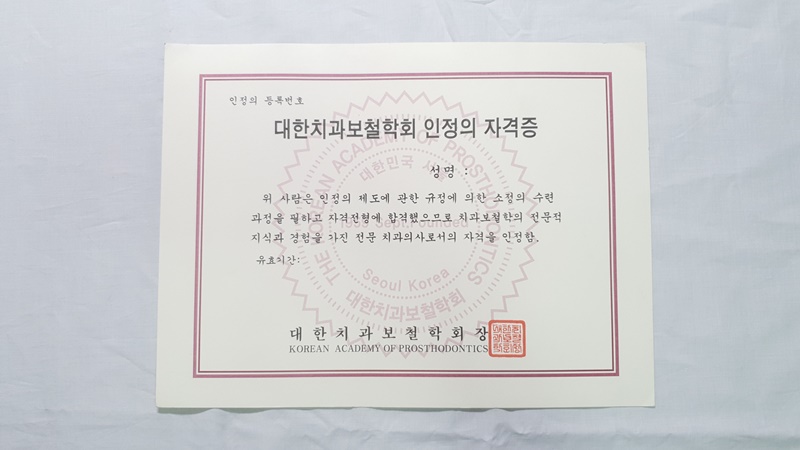 대한치과보철학회 상장