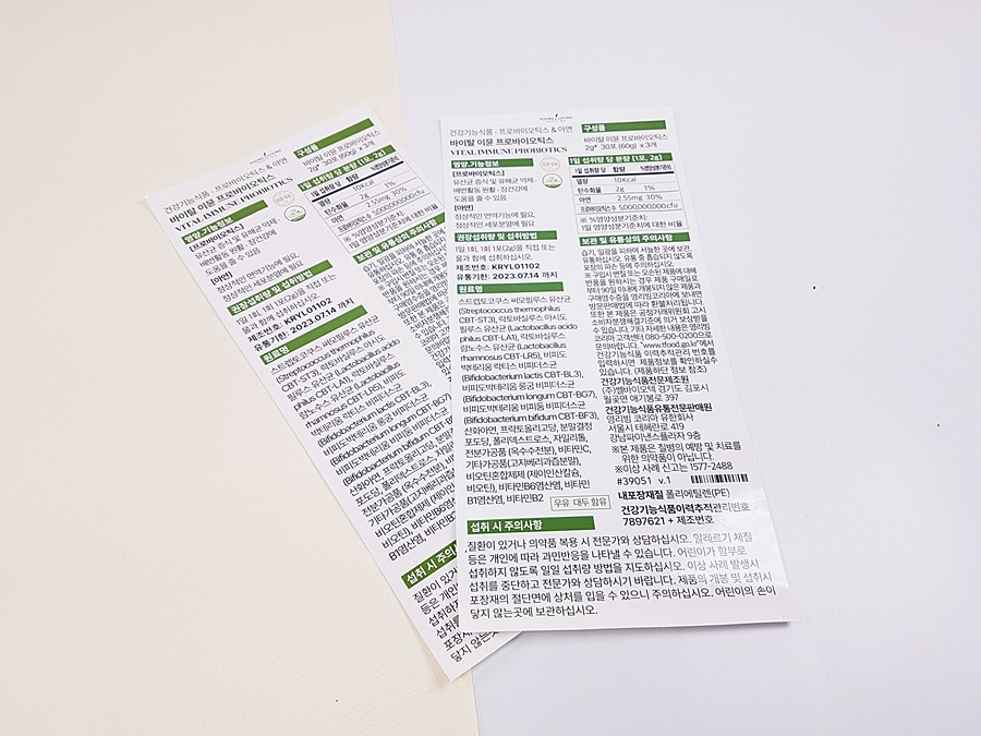 프로바이오틱스제품설명서 스티커