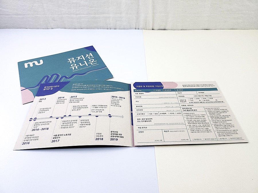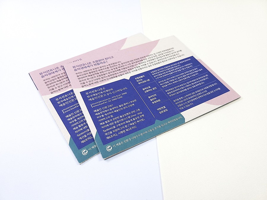 뮤지션유니온 3단접지 리플렛(사탕수수종이+콩기름인쇄)