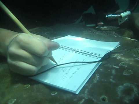 수중에서 방수노트에 필기하는 실제 상황